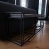 Modułowy mebel akcentowy z metalową, ażurową ramą. Konstrukcja opiera się na spawanych, prostokątnych profilach stalowych, co zapewnia geometryczną precyzję i stabilność.